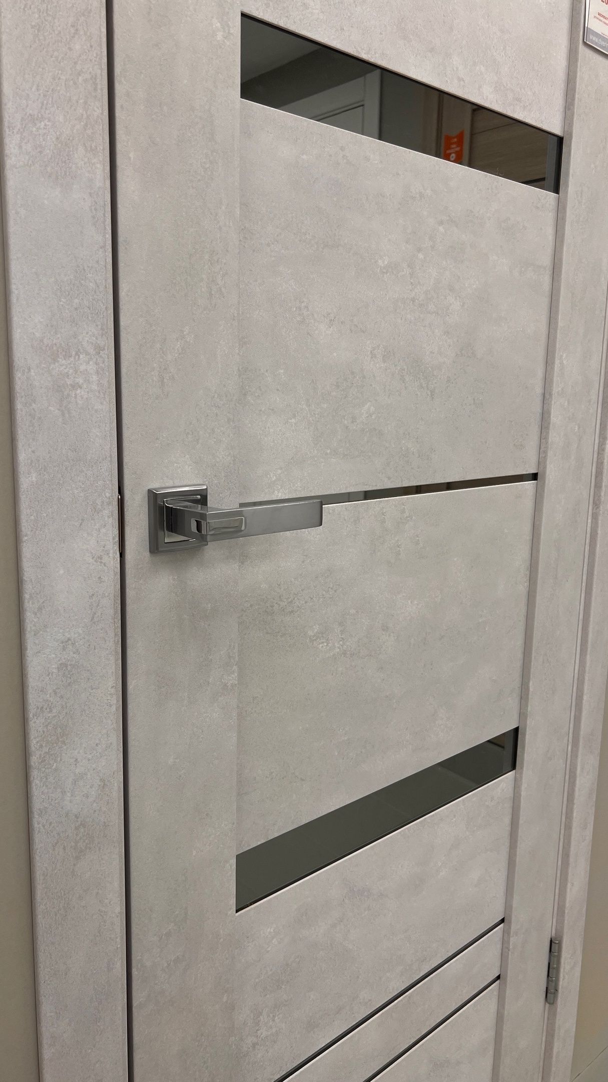 Дверь ПО Cezar 2 Бетон лайт стекло зеркало графит из Экошпона COVERFLEX (Двери Нева) в с установкой и доставкой
