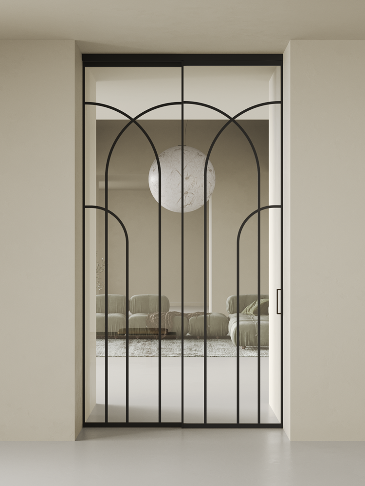 Купить дверь Diva 1 черная стекло осветленное с аркой 2 в с установкой и доставкой