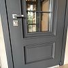 МДФ 10 мм, стеклопакет 2х камерный, внешнее стекло тонировано серебром, металлическая решетка окрашена в цвет наружной отделки